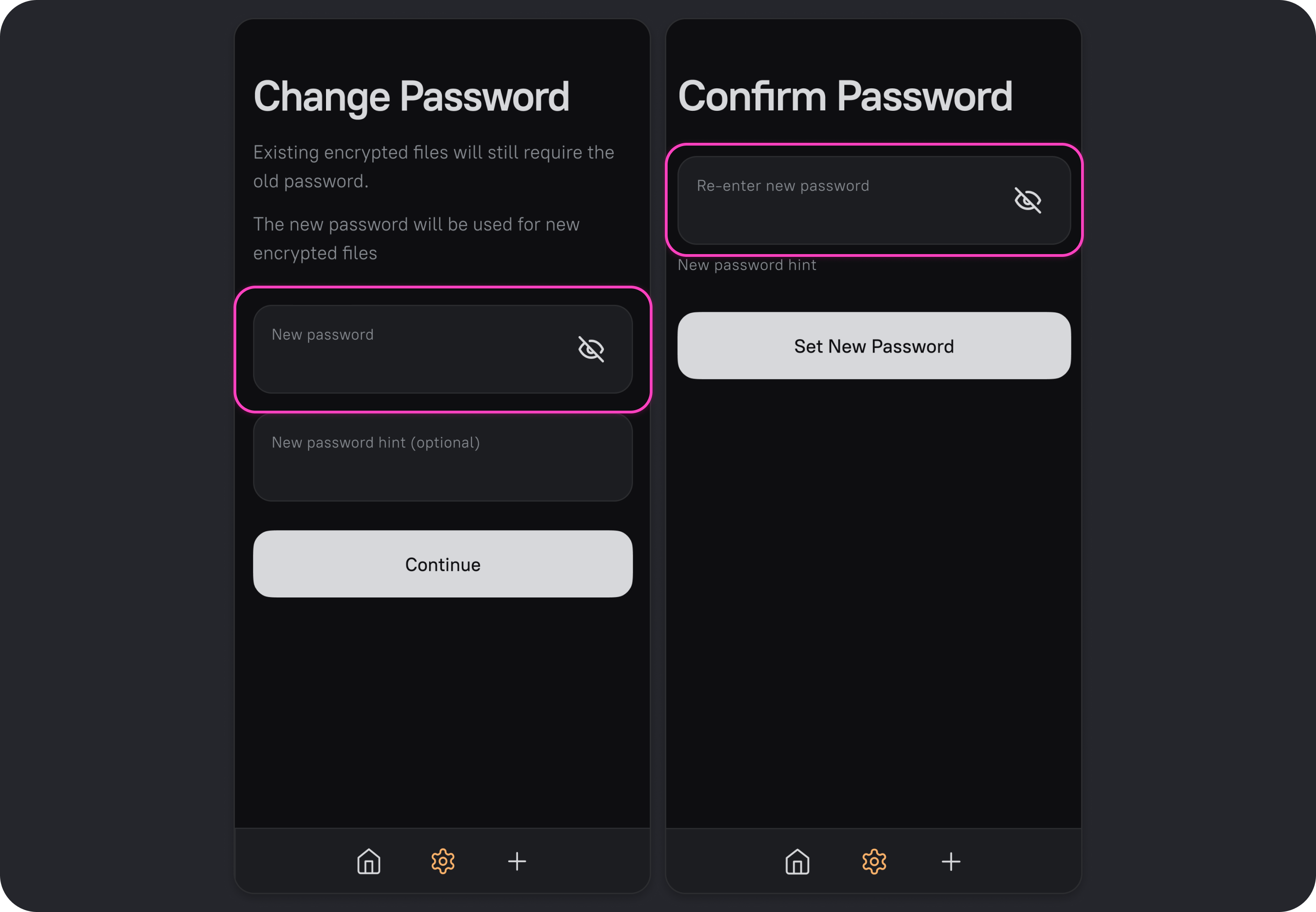After you enable encryption, every configuration and backup file you save/export from the app will be encrypted. Files saved before encryption was enabled will remain unchanged.