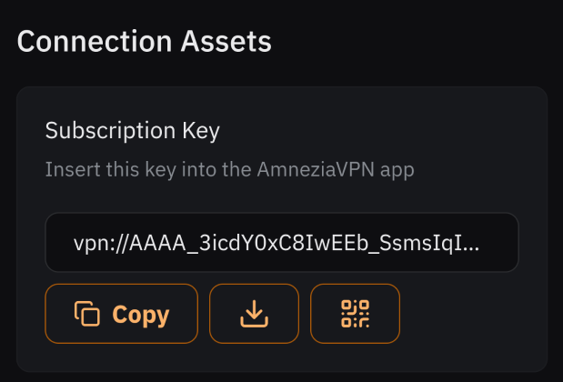 The Personal Dashboard is the second (after the order email) and last place where your vpn:// Subscription Key is stored. This key grants full access to the subscription — do not allow it to leak.