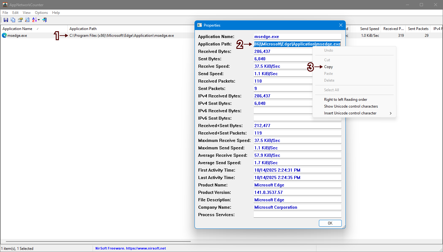 AppNetworkCounter shows processes that are currently using the network and the Application Path for each — exactly what you need to add to the app split list.