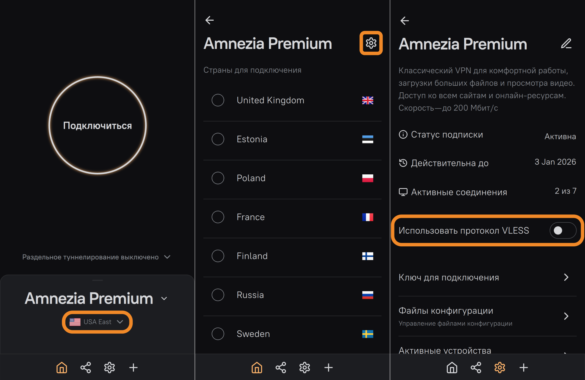 Как подключаться к VPN через VLESS-протокол в приложении AmneziaVPN