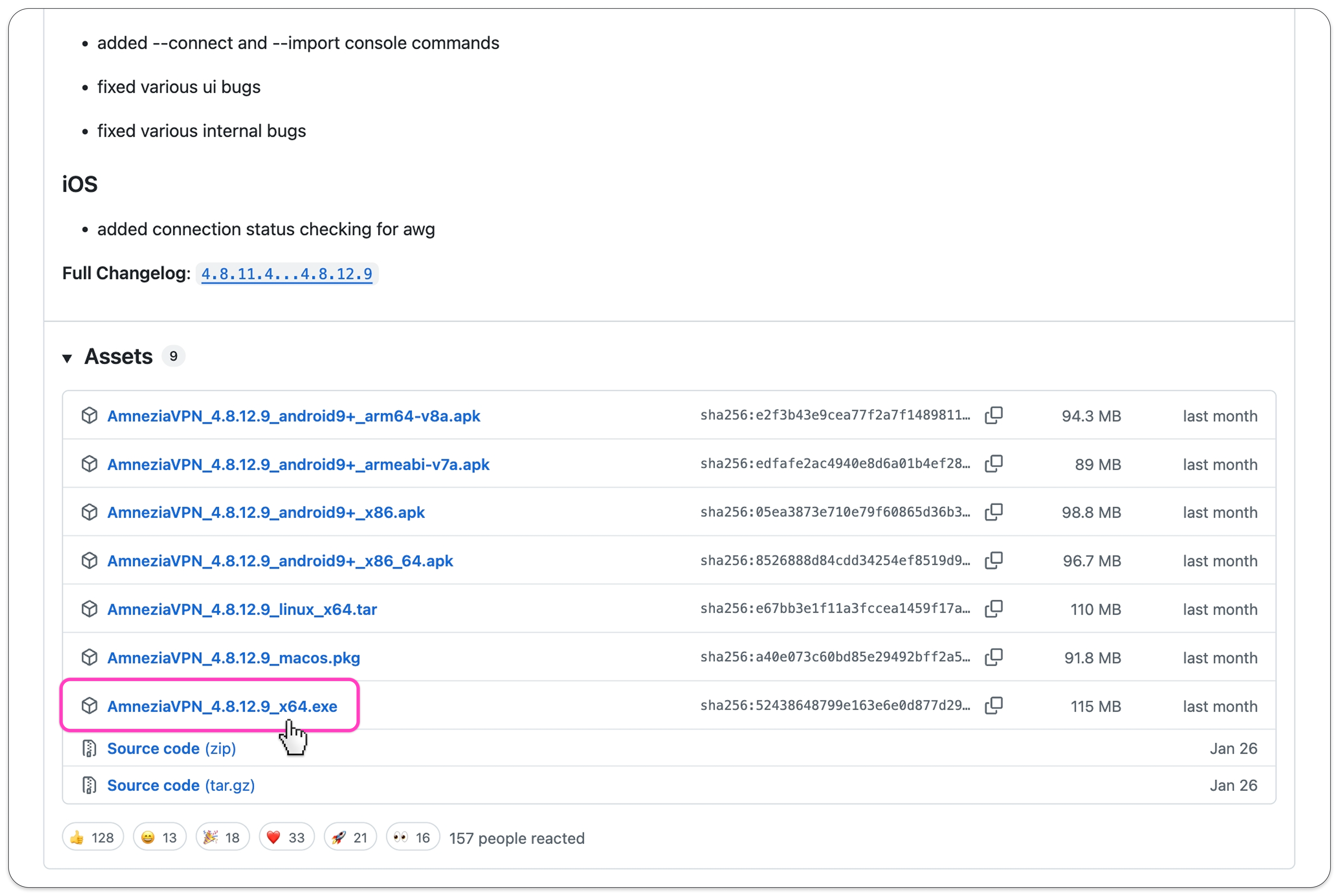 После этого в вашем браузере откроется сайт GitHub с последней стабильной версией AmneziaVPN. Вот адрес страницы: https://github.com/amnezia-vpn/amnezia-client/releases/latest.