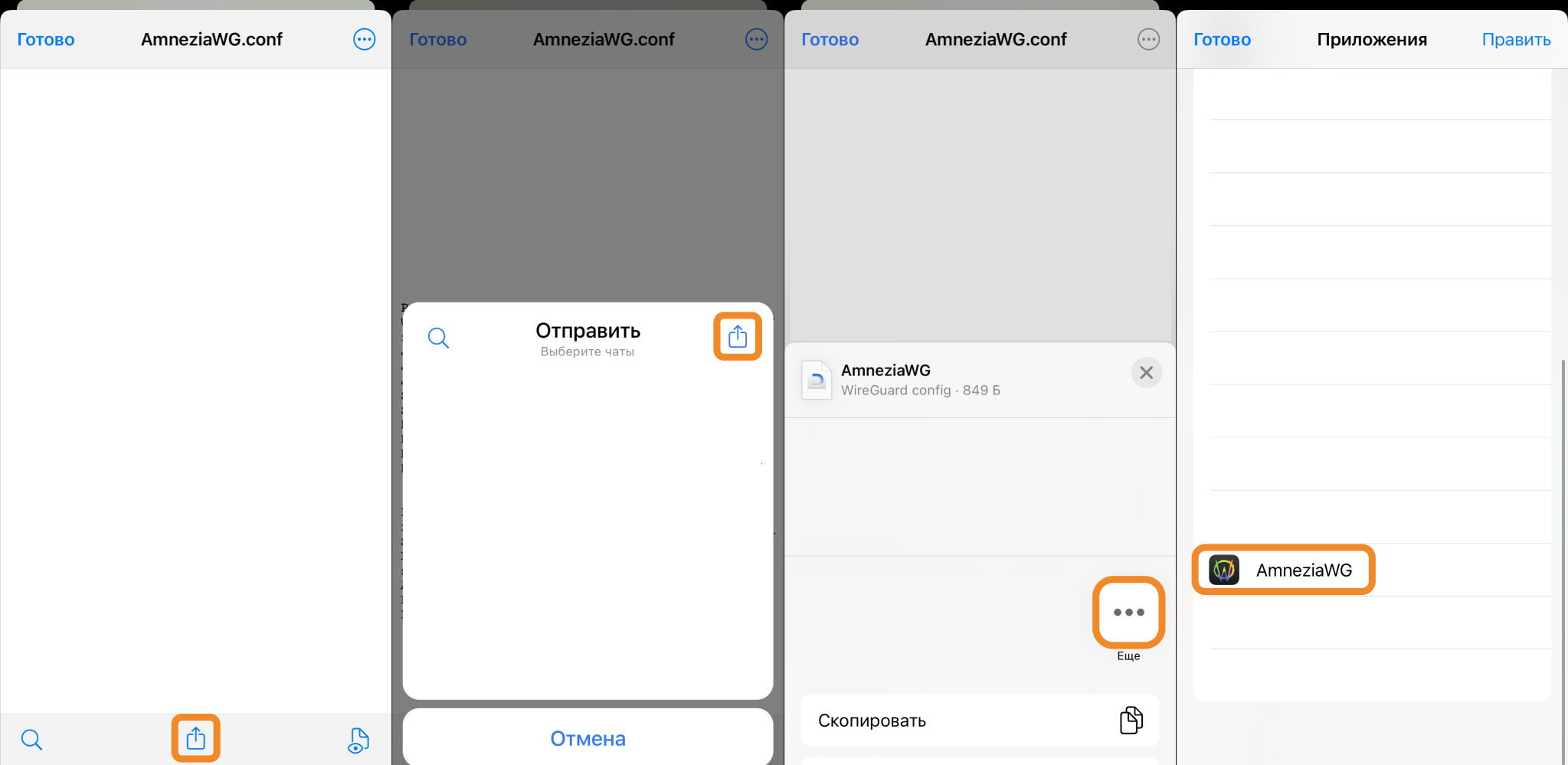 4. Выберите AmneziaWG из списка приложений и подтвердите добавление конфигурации.